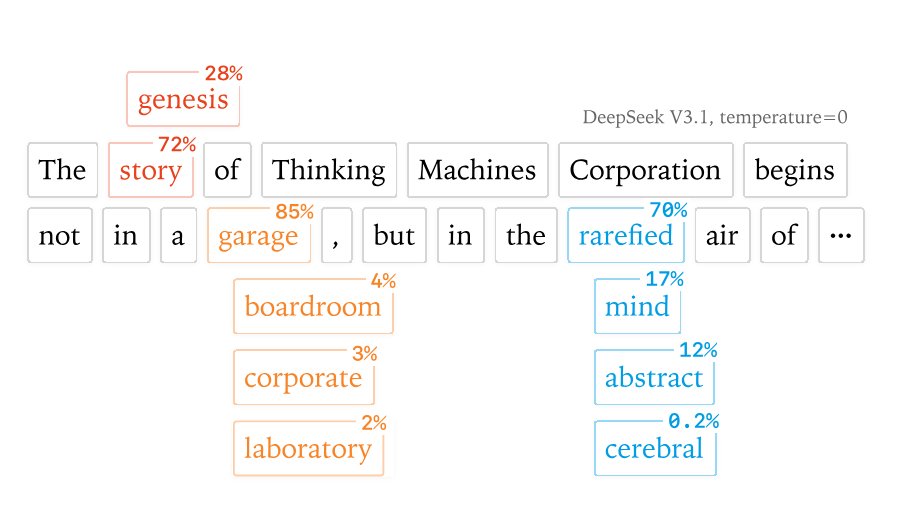 (Figure Credit: Thinking Machines Lab,在 DeepSeek 3.1 溫度係數設定為 0的 情形。 )