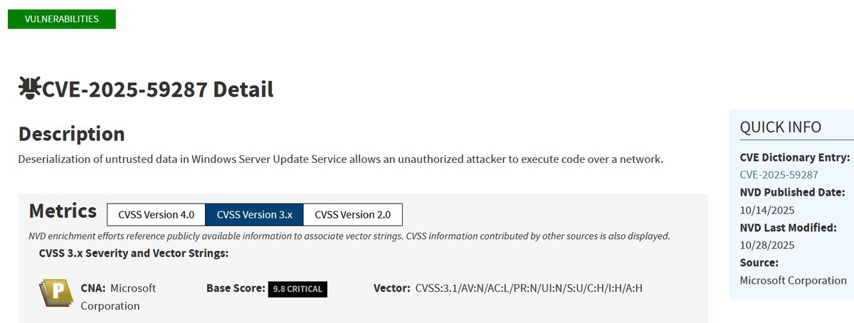 https://msrc.microsoft.com/update-guide/vulnerability/CVE-2025-59287Microsoft CorporationVendor Advisory