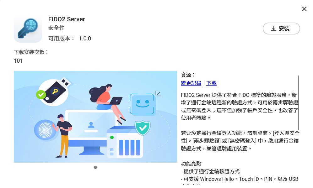 下面這個 App FIDO 2 Server 這次必安裝,它給了我們超好的 QNAP NAS 登入安全環境大升級。