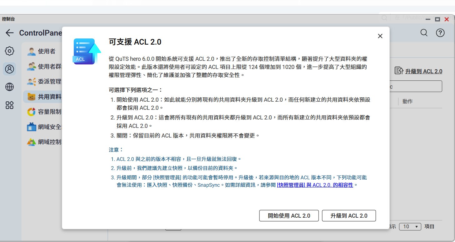 快照不相容警告: 由於升級至 ACL 2.0,h6.0.0 建立的快照無法匯入舊版 ACL 的裝置。若你的備份目的地 (Destination) 仍是舊版系統,SnapSync 與快照備份任務將會失敗。請務必確保來源與目的端同步升級。