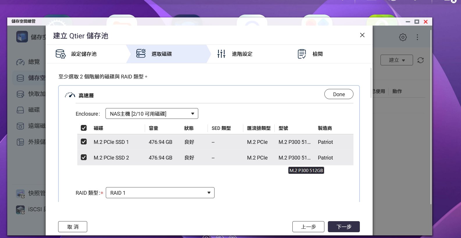 下面幾張是 CyberQ 實測建立在 QuTS hero h6.0.0 的標準三層 Qtier儲存池。