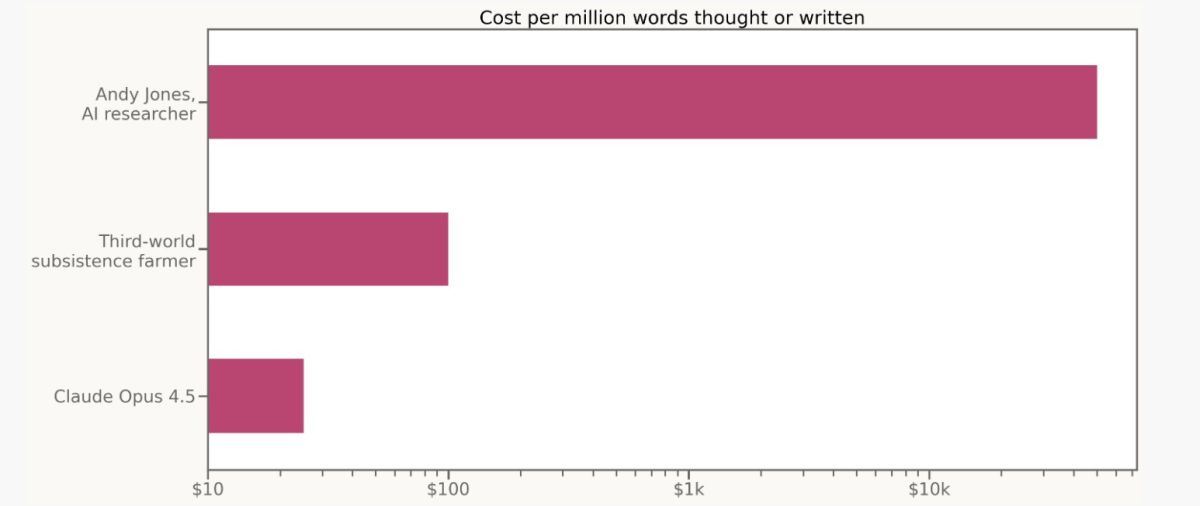才僅僅六個月,原本必須由人工回答的問題中有 80% 已經消失,改由 Claude AI 每個月去處理高達 30,000 個問題,是人類團隊過去能處理的問題量的八倍。Andy Jones 感嘆,馬匹花了數十年才被取代,西洋棋手花了數年,但他只花了六個月就被一個成本遠低於他的系統所超越。這個系統在思考和寫作上的成本,甚至低於地球上最廉價的人力。
