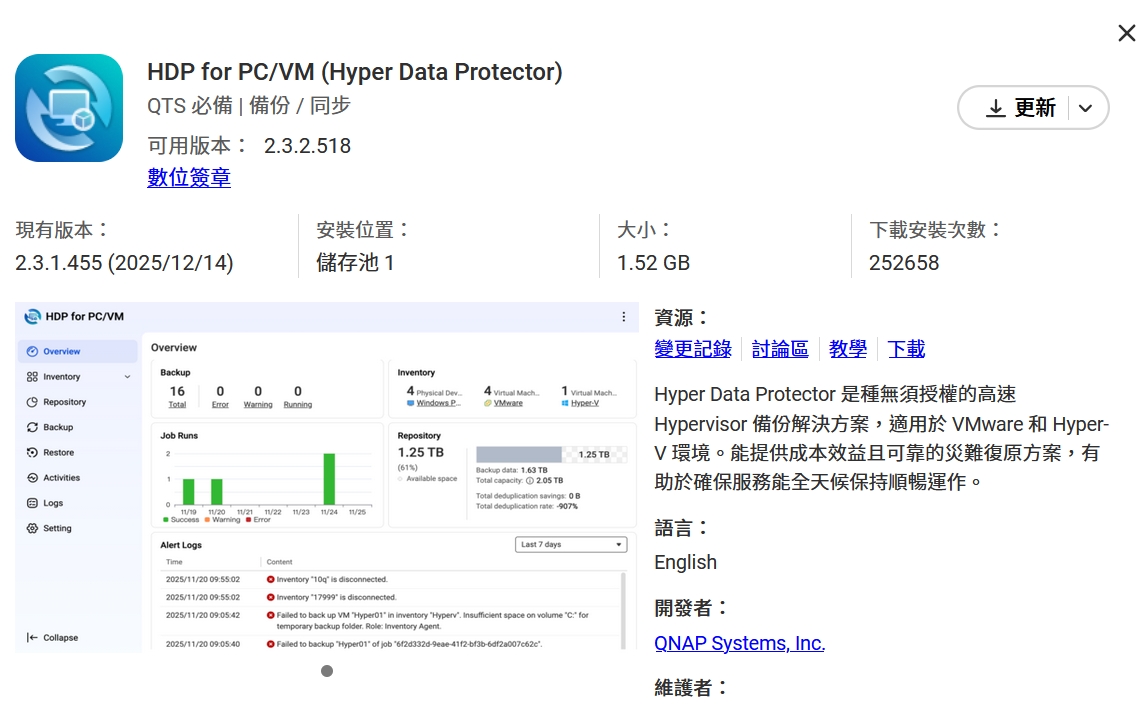 從最新的 HDP 更新紀錄 可以看出,QNAP 正致力於將原本分散的備份工具整合至 Hyper Data Protector 品牌下,整體功能會更完善和好用。
