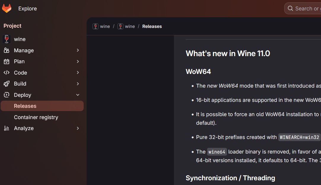 首先,讓我們看看 Wine 11,這次的更新,可說是 Linux 遊戲與應用程式相容性的分水嶺。Wine 11.0 於 2026 年 1 月 15 日正式釋出,能夠在 Unix-like 系統(如 Linux 和 macOS)上執行 16-bit、32-bit 和 64-bit Windows x86 二進位檔案。