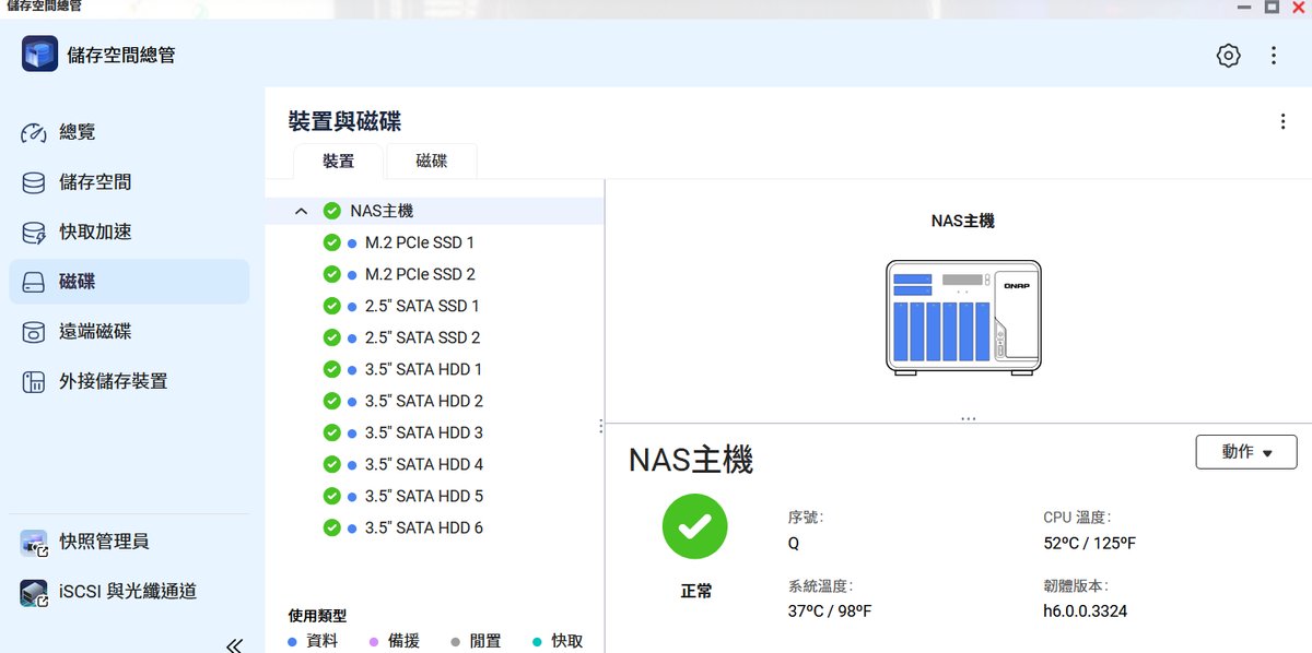 如果不想使用上面這樣的分層規劃,也可以參考這一篇 Qtier 資料分層,NVMe + SATA SSD + HDD「三層混合儲存」構築效能與容量平衡 ,用 QNAP 在 QuTS Hero 6.0 已經實裝的 Qtier 自動分層設定來分配硬碟和 SSD 資源。
