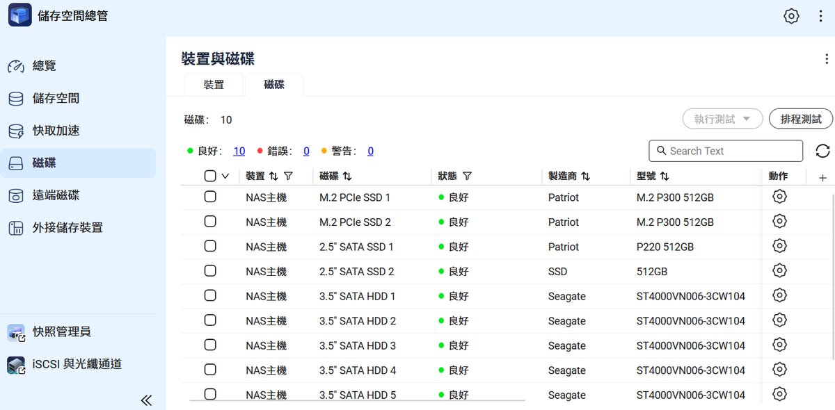 雖然 QNAP 允許將系統安裝在 HDD,但如果想要更快的系統反應,也可將這組 NVMe 設為「系統磁區」與「應用程式安裝位置」(如 Container Station, VM, 資料庫)。