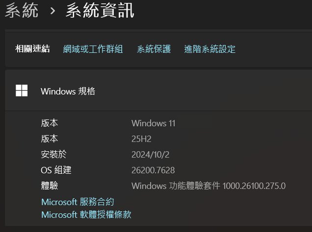 CyberQ 更新這個版本之後, Windows 11 系統會顯示版本號碼為 26200.7628。