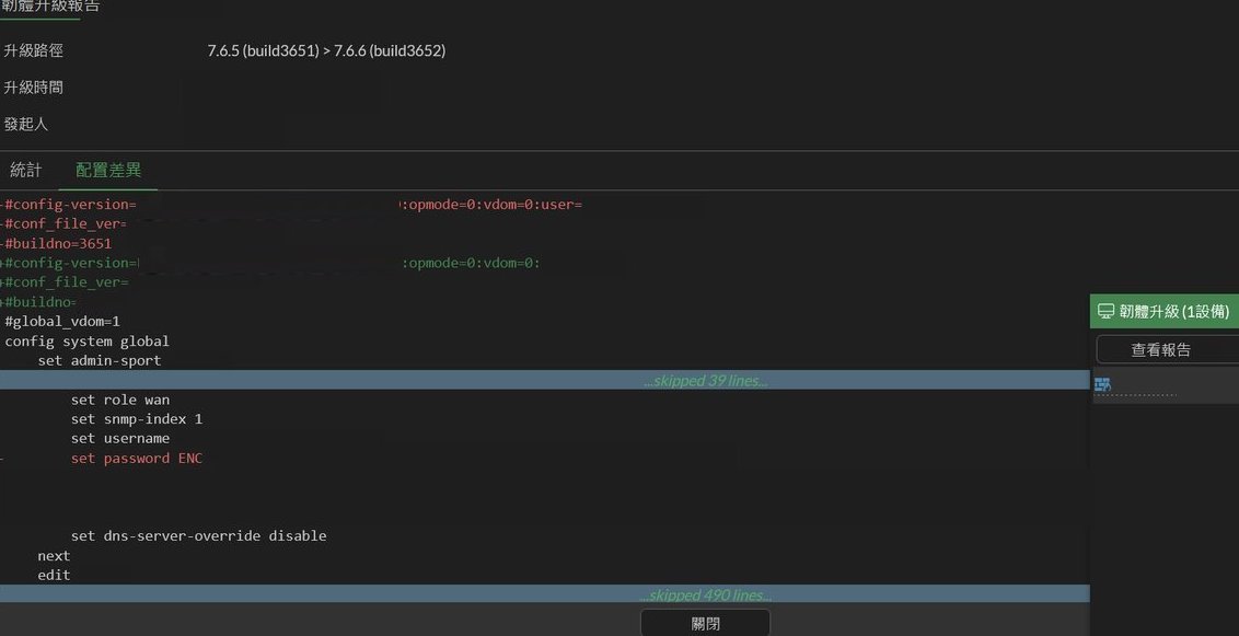 更新後的韌體升級報告可以對照一下設定檔的差異。