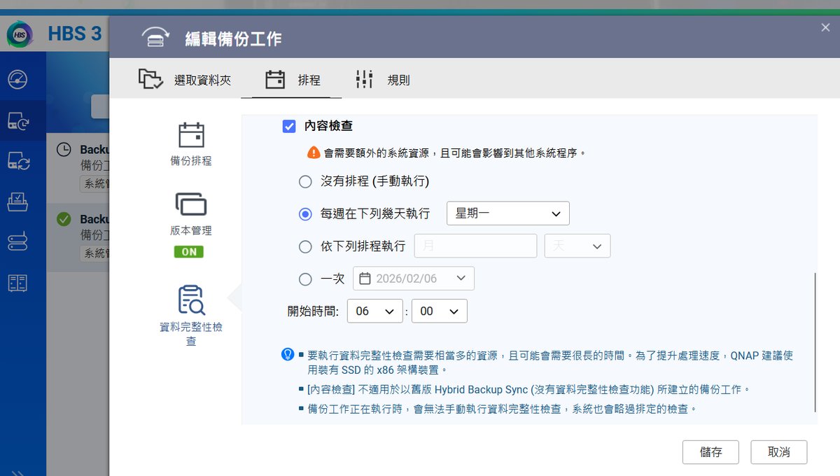 首先是 SMB 協定支援 Checksum(檢查碼)驗證,針對「主動式 SMB 同步工作」,新版本引入了以檢查碼為基礎的完整性檢查。這意味著系統不僅僅是比對檔案大小或修改時間,而是能透過雜湊值(Hash)比對,確保檔案在傳輸過程中未發生位元翻轉(Bit rot)或損毀,提升了異地備份的可信度。