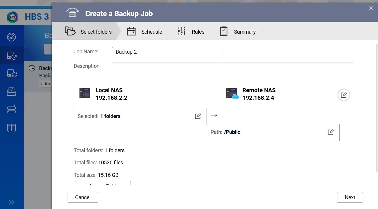 在建立備份工作時,我們選擇已受保護的遠端 NAS: