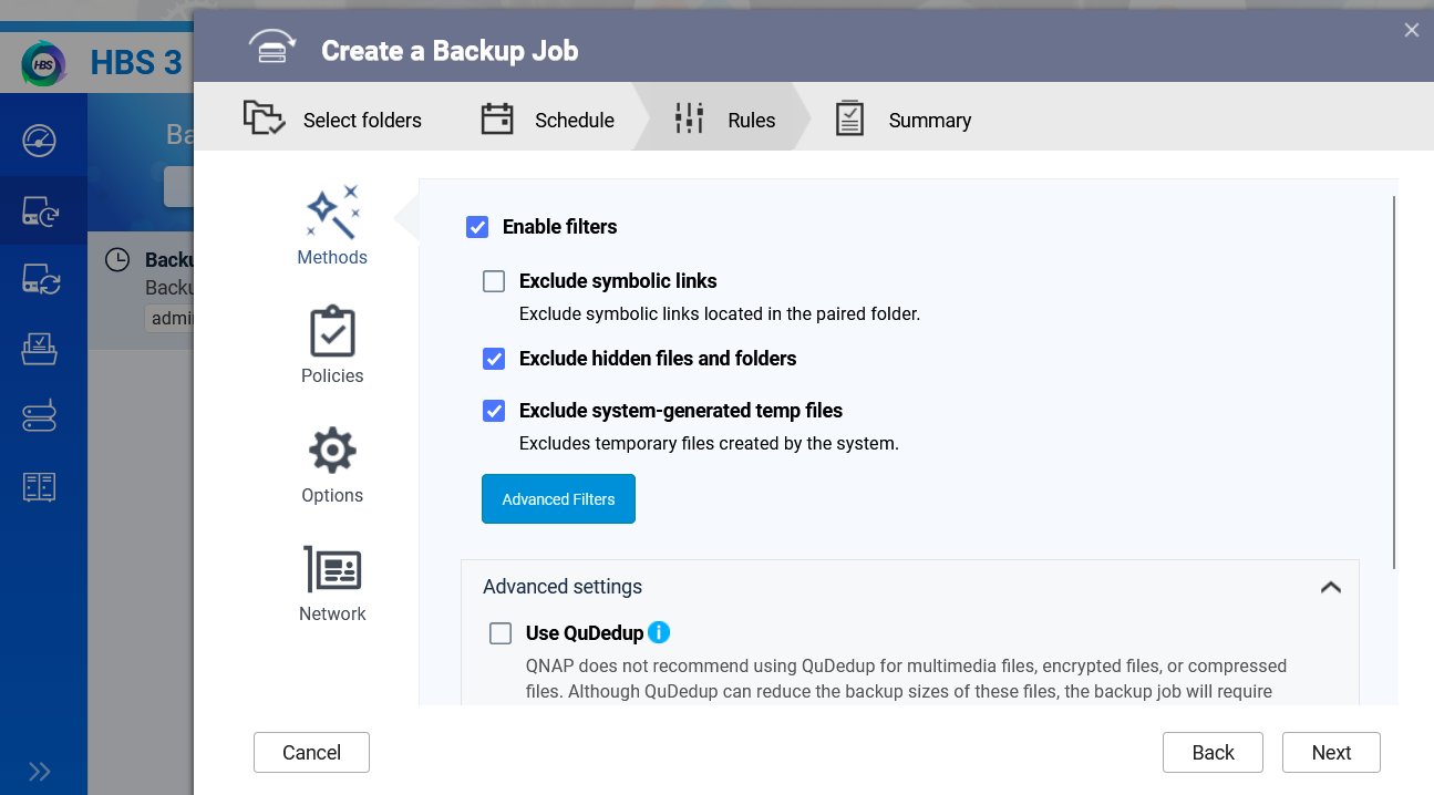 此外,為了節省空間並提升效率,我們也在 HBS 3 中啟用了過濾條件,排除暫存檔與隱藏檔: