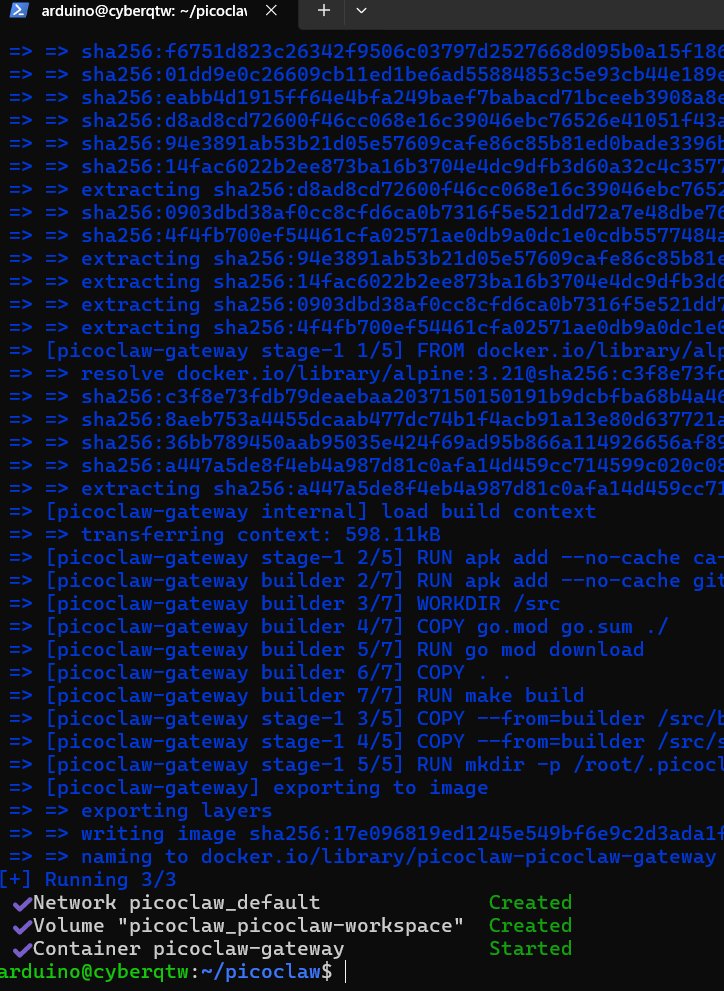 CyberQ 也做了 PicoClaw 在 Arduino Uno Q 開發版上的實測,是可以用 Docker 來部署的。