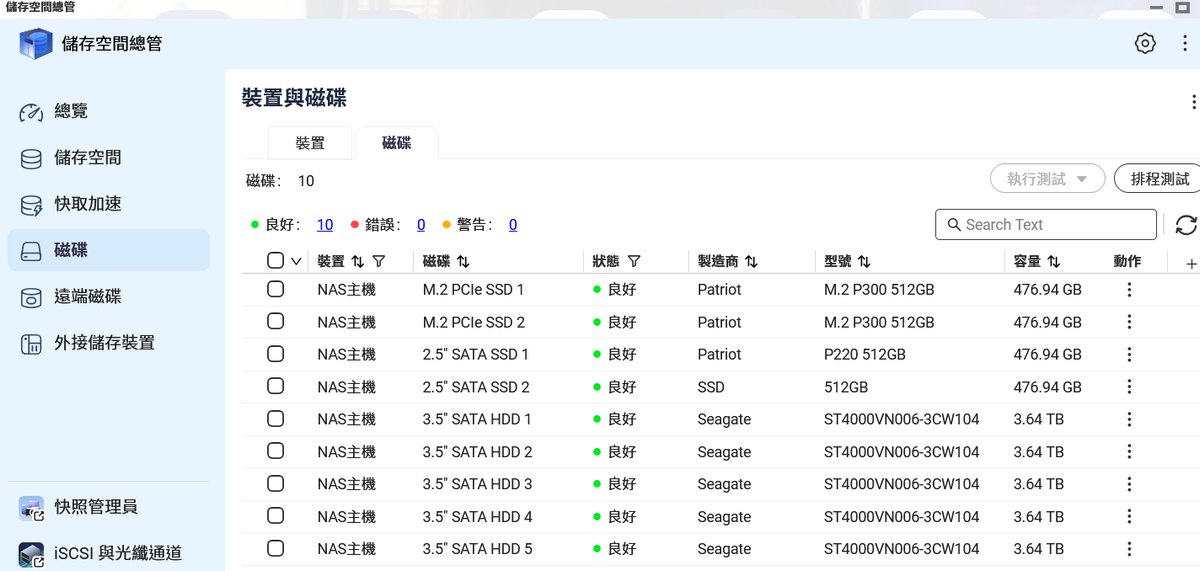 如果使用的是一般消費級 SSD(如本案例 Patriot P300/P220),這裡必須特別提醒,NAS 快取會 24 小時不斷地在背景抹寫碎片資料,對 SSD 壽命的消耗會大於一般家用電腦。