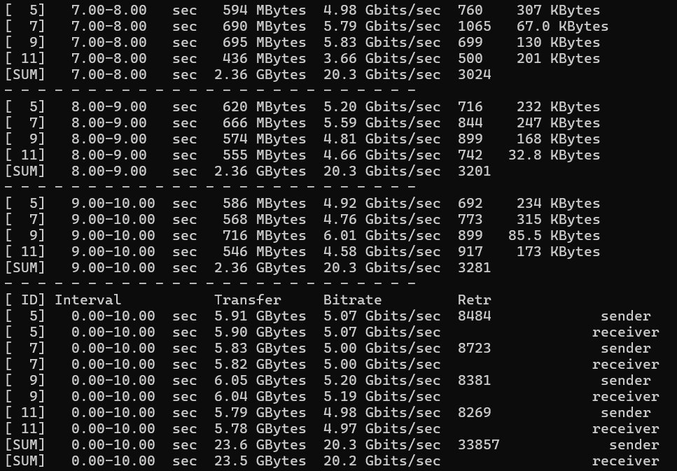 具備 PCIe Gen 4 x16 的 QNAP TS-h1277AFX 是順利的,但 QNAP TS-855X 這類機種雖然沒有提供 PCIe Gen 4 x16 的 PCIe 插槽,但它還是可以用的,PCIe Gen3 x4,當然是沒辦法體驗到全速的快感,反而撞上了一面 20 Gbps 的嘆息之牆,但它的理論值應不止於此,剛好可以來檢視我們在一般網路環境中,最佳化 TCP 傳輸用的一些基礎方式,以下是針對這種情況的一些說明。