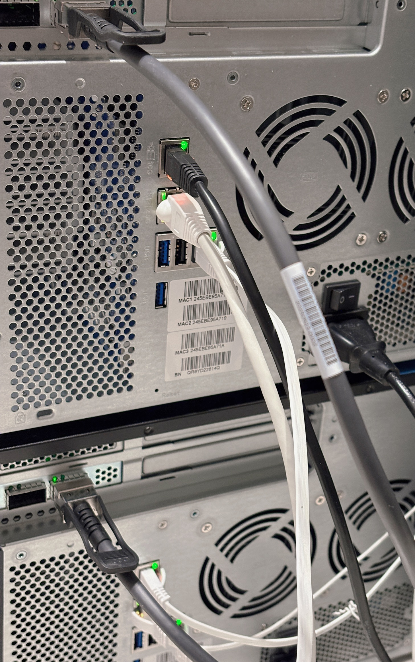 這次我們在測試環境中,將兩張伺服器等級的 100GbE 網卡 QXG-100G2SF-BCM(Broadcom BCM57508)與 QXG-100G2SF-E810(Intel E810)部署於 QNAP TS-h1277AFX ,以及 QNAP TS-855X 等 NAS 上,並測試與 PVE 伺服器、NVIDIA DGX Spark 間的連線,並搭配 QNAP QSW-M7308R-4X 交換器進行實測。