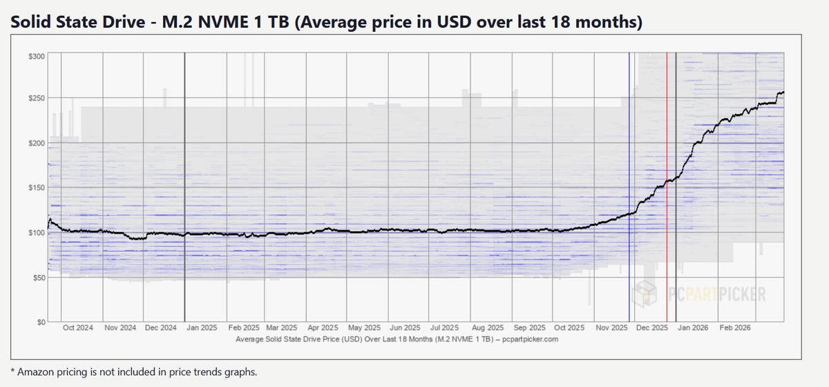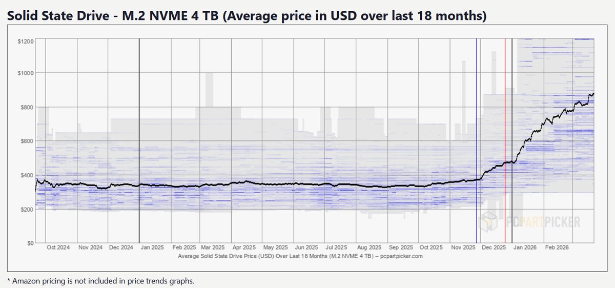 • PCPartPicker 價格趨勢解析 AI 狂潮下的硬碟與 SSD 漲價風