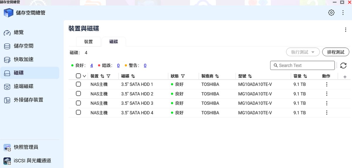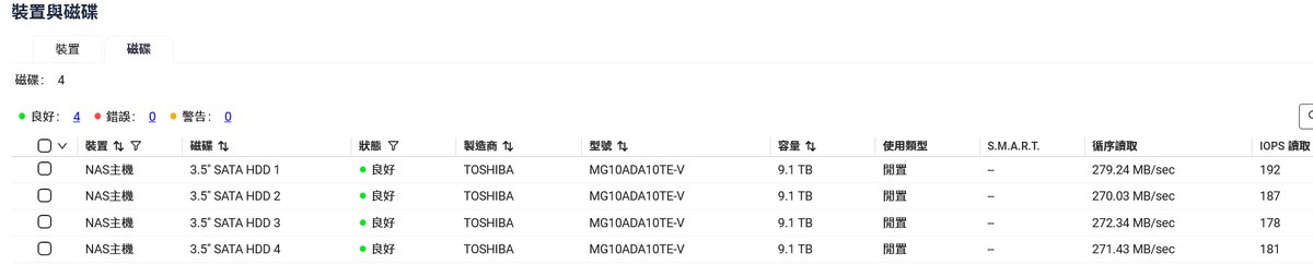 組建 RAID 陣列最怕遇到木桶效應,陣列總效能被最慢的那顆硬碟拖垮,這四顆硬碟有相當穩定的出廠品質與效能一致性,這為我們後續的高速 10GbE 儲存池提供妥適的物理基礎。
