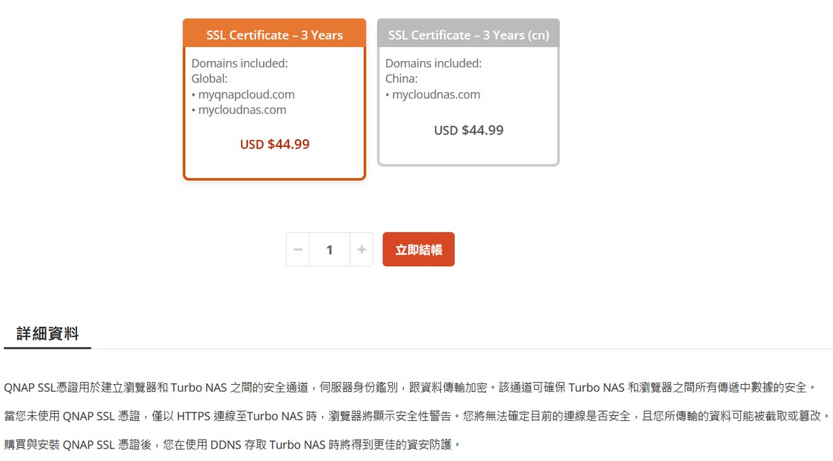 QNAP 實際上是扮演安全性憑證代理的角色,與國際知名的商業 CA 機構合作,透過 API 串接來替使用者的網域代為申請合法憑證。所以這個新服務其實是「三年的憑證代管與自動續約服務」,為期三年的 SSL 憑證訂閱服務 (Subscription)。根據 CyberQ 的截圖,右側有一句非常關鍵的官方承諾:「100% 自動續約,由 QNAP 為您處理」。