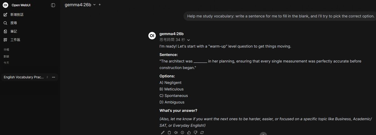 其實,這不是你的硬體不夠力,而是系統架構可以再最佳化。CyberQ 實際推薦一套目前開源 AI 用戶普遍認為成本 CP 值不錯的 16GB VRAM 日常工作架構。只要懂得將運算與應用徹底分離,至少擁有 16GB VRAM 的 NVIDIA 顯示卡,絕對能發揮出接近企業級小型伺服器的效能,且16GB VRAM 顯示卡可以很容易地讓 gemma4:26b moe 模型載入到 Ollama 中去跑。