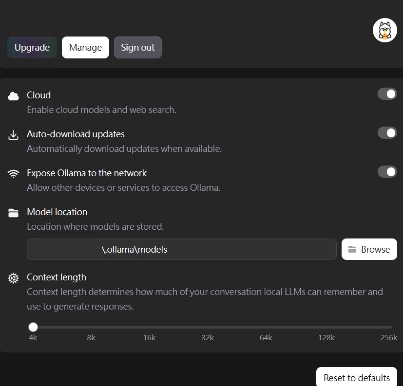 關鍵設定部分,在 Windows 環境下,你必須設置環境變數 OLLable_HOST=0.0.0.0,如果有開 Ollama 的 介面,在設定中開啟讓其他裝置可連線即可,但記得不要把 11434 port 對外,會有資安疑慮,請留在防火牆的内網中。