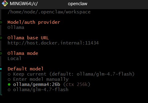 CyberQ 提醒這個的連線秘訣,OpenClaw 容器本身不吃顯卡,它只需要透過 API 位址 http://host.docker.internal:11434 ,就能連去本地端 Docker ,把思考邏輯與推論需求丟給本機的 Ollama 大腦處理。