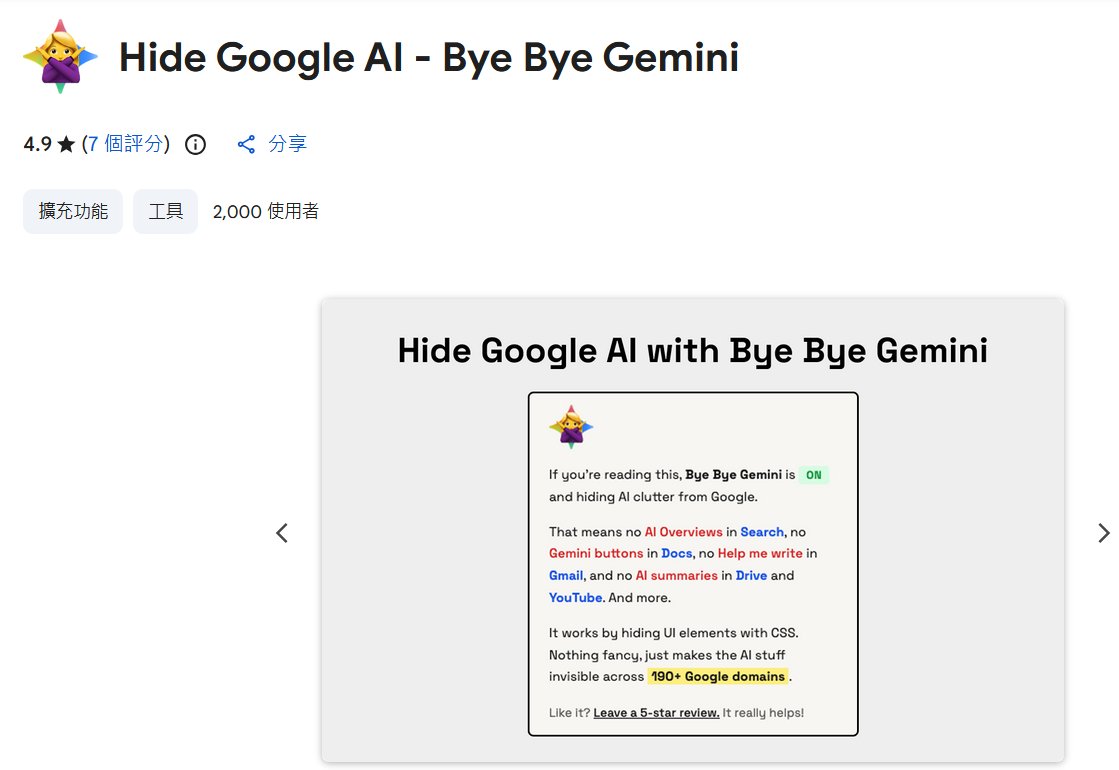 如果你不想每次手動切換標籤,透過安裝瀏覽器擴充功能,讓系統在背景「自動化過濾」是最輕鬆的方式。安裝後什麼都不用管,搜尋介面就會瞬間恢復簡潔。
