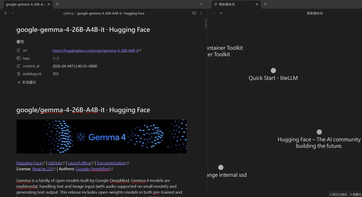 CyberQ 認為,隨著 AI 模型和 AI 代理人的強大化,並不代表自己就不能夠好好地把自己的知識圖譜建立起來,畢竟透過 AI 產生的和自己有意識處理過的資訊流,在融會貫通上還是有差異。我們能做的就是可以再把一些標註的工作,給 n8n 或 AI 代理人再來協助,也是一個不錯的方式,但不論是哪一種,你放在 Wallabag 和 Obsidian 地端的東西,就會是你擁有的,放在 NAS ,同時又做好備份的話,別人也帶不走喔。